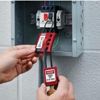 This basic lockout tag procedure involving safety hasps means that the equipment, machine or energy source is not able to restart until the last worker has completed their job and removed their personal safety lockout padlock from the lockout hasp.